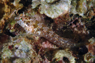 COMO RECONOCERLO.- Es un blenio de talla pequeña (hasta 7 cm), de cuerpo fusiforme y ligeramente comprimido.Los machos tienen unos tentáculos suparorbitales mucho mas largos que los de las hembras.Boca pequeña con labios carnosos.La aleta dorsal presenta una muesca que aparenta dividirla.Color gris verdoso, con una serie de 7 a 9 bandas marrones sobre el dorso, aunque los machos tienen una coloración variable durante la época de reproducción (amarillenta, verde, marrón o rojiza).Se reproduce de mayo a agosto. Ovíparo.