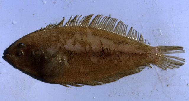 COMO RECONOCERLO.- Pez plano de cuerpo elongado, ovalado, casi elíptico y de unos 20 cm de longitud, con los ojos en lado izquierdo del cuerpo.La cabeza ocupa casi un cuarto de su longitud total; tiene una boca pequeña cuya maxilar sobrepasa ligeramente el inicio del ojo izquierdo, que se haya separado del derecho por una pequeña protuberancia osea.La aleta dorsal tiene 81 a 93 radios blandos, los primeros libres en parte, comenzando delante de los ojos; anal con 61 a 74; pectoral con 10 u 11, siendo la del lado ciego con la base mas pequeña que la del otro lado; aleta ventral con 6 radios blandos, que le dan un aspecto inusual.