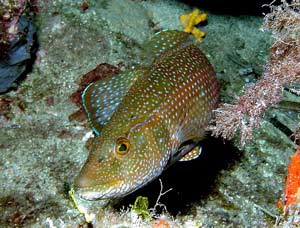 REPRODUCCIÓN. - Son hermafroditas proterogínicos, por lo que todos los individuos maduran primero como hembras y después, al alcanzar cierta edad o tamaño, se convierten en machos. Se reproduce entre el invierno y la primavera. Los huevos, más densos que el agua y adhesivos, se desarrollan en 4-5 días, y los machos construyen nidos y los vigilan. Como el mero, el tordo verde es un animal protógino, es decir, que nace siendo hembra y se convierte en macho con la edad. Normalmente, los ejemplares menores de 27 cm siempre son hembras, y los mayores de 38 cm, machos.